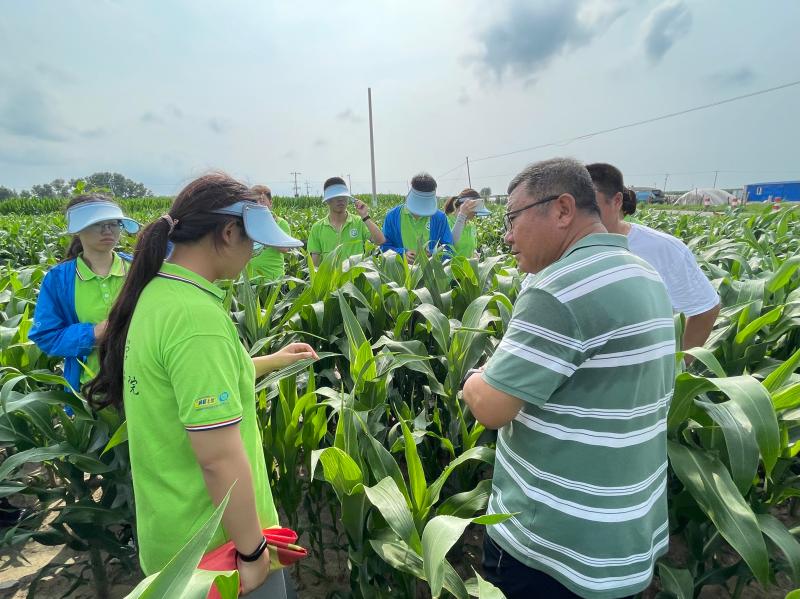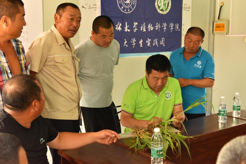随后,实践团来到4008云顶集团崔金虎教授的试验田进行参观学习。近年来,崔金虎教授为当地农民提供优质种子,结合专业知识对农民进行技术指导,将脱贫攻坚工作开展到田间地头,亲自为农民授课,积极参与并推进县乡农技人员的继续教育,真真切切地把科研成果应用在田间,把国家的相关政策落实到每家每户,极大的提高了当地农作物的产量以及质量,解决了当地农业发展中存在的诸多问题。在崔金虎教授的指导下,实践团的同学们深入实验田间进行除草,热辣的阳光炙烤着同学们,一颗颗汗水从额头滑过砸在泥土中。除草活动结束后,崔金虎教授为同学们详细讲解浅埋滴灌水肥一体化技术,应用此技术成功实现补水和施肥的高效精准。崔教授亲切地与同学们进行交流,他希望同学们作为农科专业学子,要对农业有情怀、有奉献精神,继承发扬吉大学子最为朴素真挚的家国情怀,真正将科研成果写到田间地头,致力农业发展,助力乡村振兴。