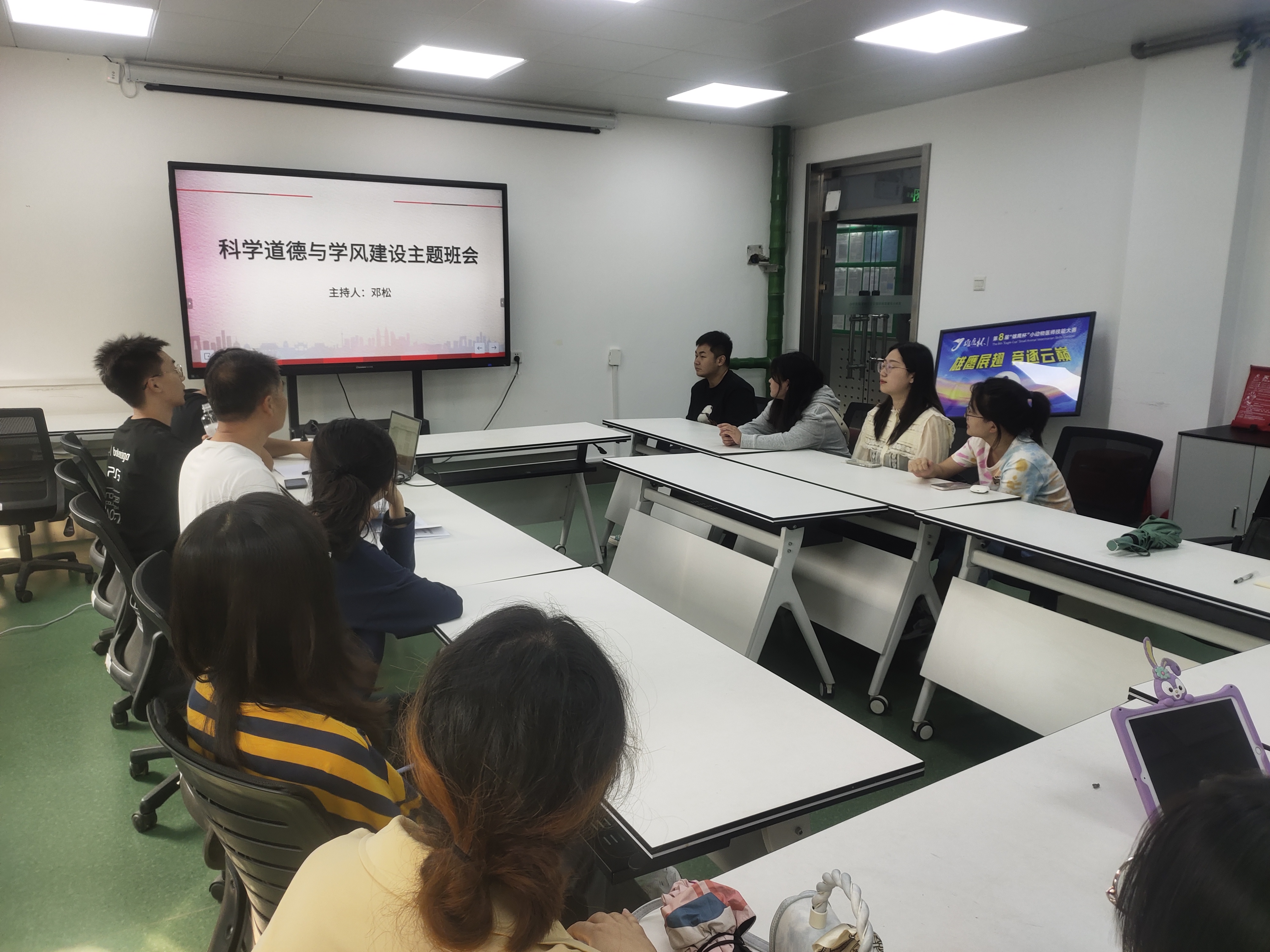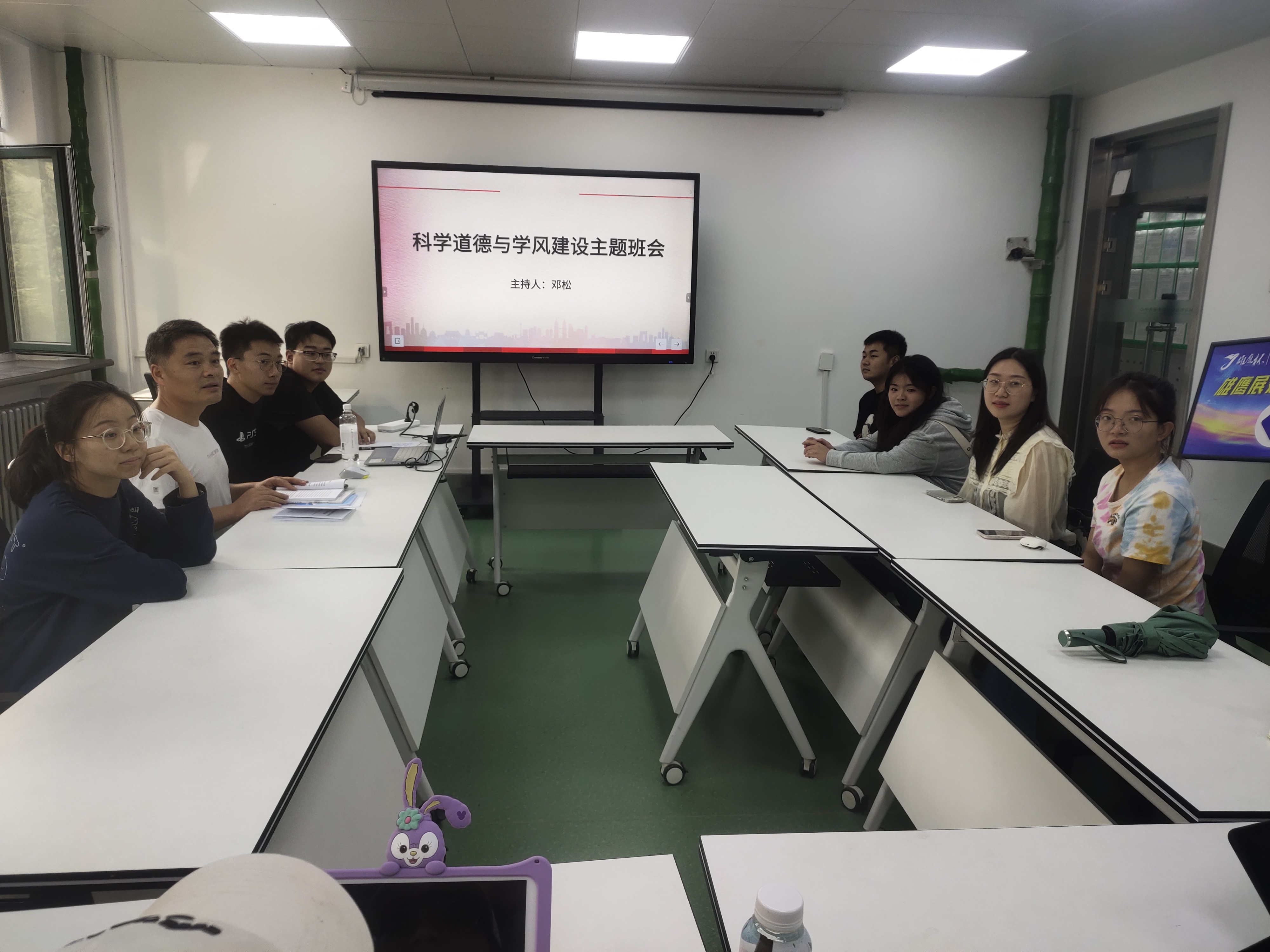 2023年9月19日4008云顶集团在201会议室召开科学道德与学风建设班会,会议由研究生辅导员邓松老师主持。