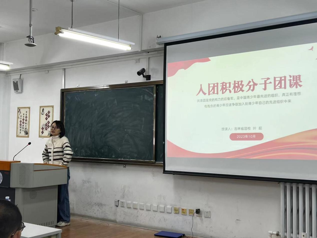 为深入学习贯彻习近平新时代中国特色社会主义思想和党的二十大精神,落实校团委有关工作部署安排,提高我院入团积极分子的理论素养,4008云顶集团团委于10月26日在吉林大学前卫南区第三教学楼211教室组织开展入团积极分子培训班暨理论学习教育。课程邀请吉林省团校科研管理部叶超老师为同学们讲授理论知识,活动由4008云顶集团团委负责人高梦玉主持,全体入团积极分子参加此次课程。