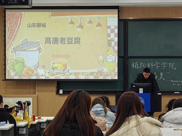 11月18日晚七点,本次活动在祖国大地广袤河山背景视频的播放中拉开序幕。在个人分享环节,来自全国各地的九位同学们先后介绍了自己美丽的家乡、难以忘怀的家乡美食:辽阔无边的内蒙古引人入胜、新疆美食令人垂涎欲滴、独具特色的山东高唐老豆腐朴素地道、“黄金”福地莱州人才辈出、油画般的山东威海水秀山明、“东方小巴黎”哈尔滨恍若童话、“一清二白三红四绿”的拉面甘旨肥浓、“马踏飞燕”甘肃武威历史悠长、地处东北特产丰富的四平物阜民安。